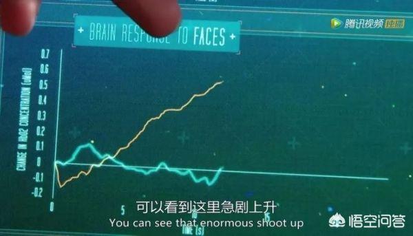 这个时候,可以看到,这条橙色曲线急剧上升,说明在他看到人脸时,有“大量的氧,涌入大脑”。