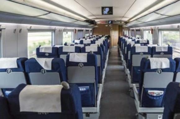 座椅下方脚踏是一等座的独特之处,乘客伸脚即可踩住脚踏板,半躺在座椅上格外舒服。一等座的折叠小桌板设在自己座椅扶手内,取出即可使用。