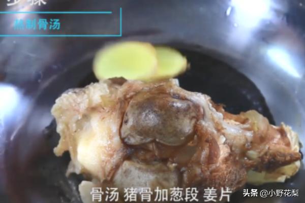 1、猪骨加葱段,姜片熬制骨汤。