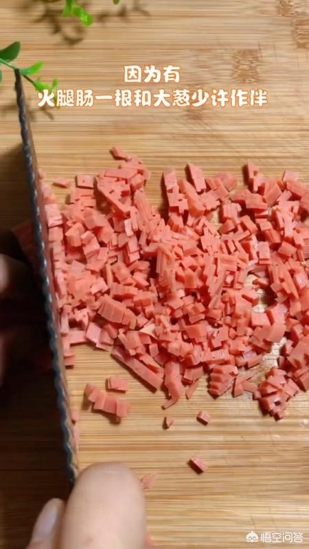 2、去皮的西红柿切小块,火腿肠切小丁,葱切碎。
