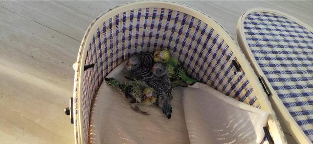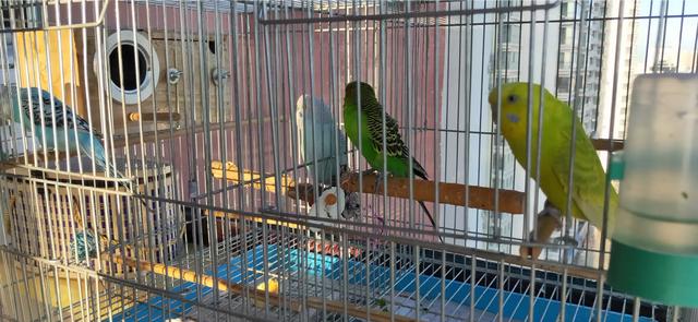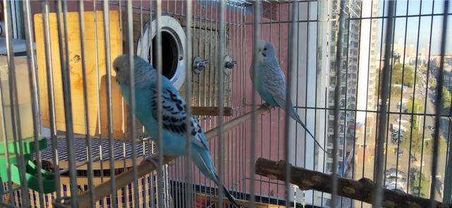 为了给家里母鸟配对,在网上买了一只公鹦鹉,路途遥远颠簸到家,它受到了惊吓!开始很不安,笼子里上蹿下跳的,我就和别的鸟一样,正常喂食,倒水,放蔬菜,并且把手养的鹦鹉在它面前摆弄,等它熟悉我以后有一个月吧,我开始用饥饿法,每天早上不喂食,等它饿了就用瓶盖装米用手递进笼子里,它饿急了就会下来吃,再过几天就用手捧谷子喂它,它也不怕了,现在,和我家母鸟相处不错。今天居然还对嘴喂食了,这是配对成功了!赶紧安装了鸟窝!(我家另一对已经生了第七窝了!欣欣向荣啊)