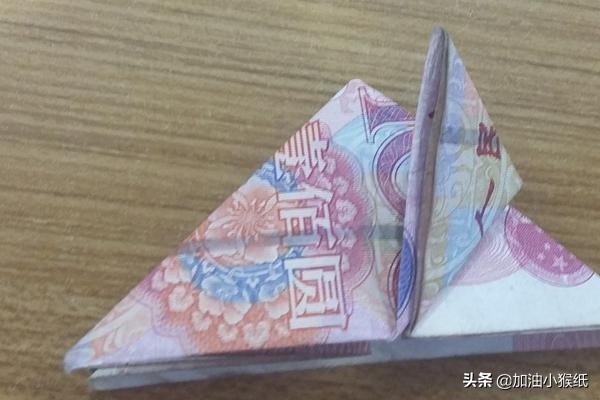 1、取一百元的钱一张,对折成正方形,然后角对角,边对边对折出痕迹,展开;