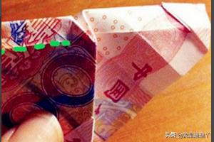 1、首先准备100元钱,对折成正方形(刚开始学习的时候可以用一张和人民币大小相同的纸来练习),反复对折形成的折痕。