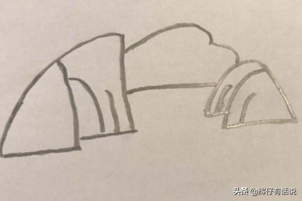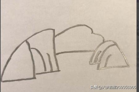 2、在大贝壳的右侧空出来一些空间,然后再画两个小点的贝壳,见下图;