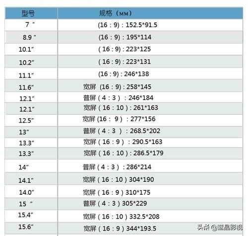 下面的是某品牌笔记本显示屏贴膜的规格,可以参考。