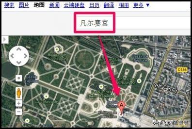 2、然后,在Google搜索框中输入一个要查找的地名,这里以凡尔赛宫为例。
