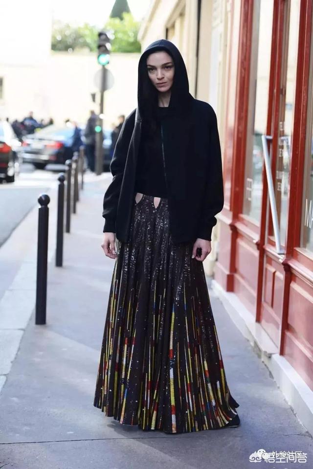 好不好看这个就看个人对黑色的喜爱程度了,像我的话,就比较喜欢黑色的卫衣搭配裙子来穿,裙子呢,也分为两种,一种是百褶裙,另外一种就是长裙,因为我个子就是160,所以这两款非常适合我这小个子,优点就是显高呀!