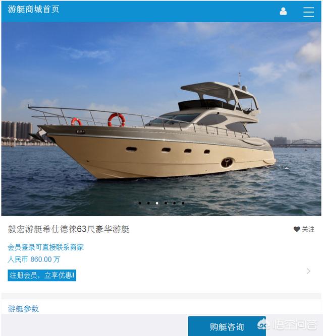 毅宏希仕德徕63尺在海之蓝游艇商城上的报价是860万,详细状况可以上去咨询一下!