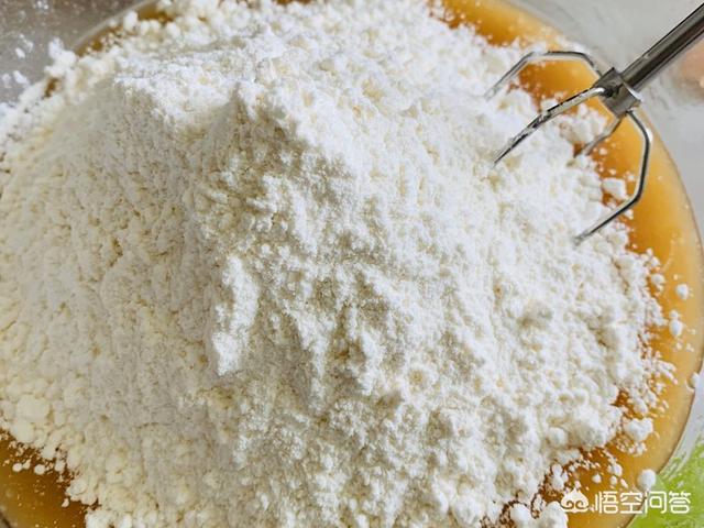 3、过筛加入中筋面粉。