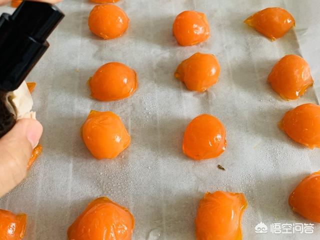 8、咸蛋黄入烤箱100℃烤5分钟后放凉备用。