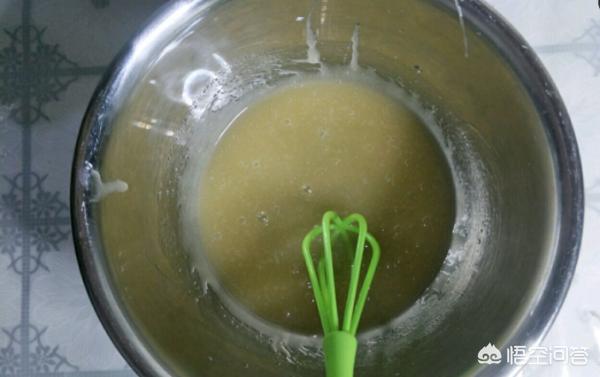 4、面粉可以分成两次加进去,第一次翻拌完全融合再加下一次。