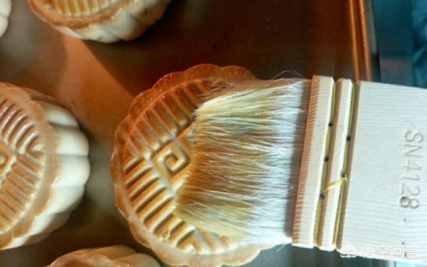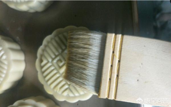 10、月饼烤5分钟定型后轻轻刷一层薄薄的蛋黄液。