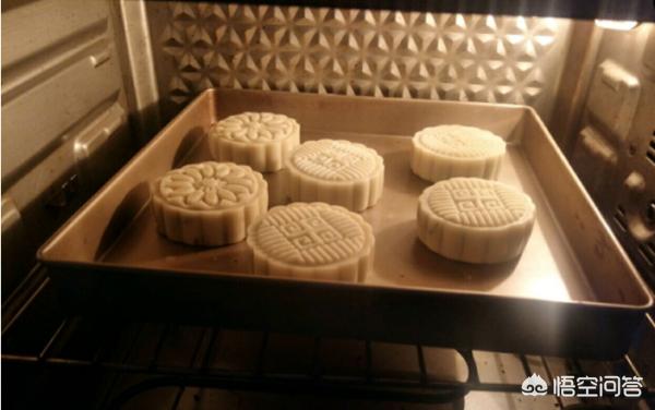 15、将月饼表面喷一点水,防止烤开裂,烤箱提前预热180℃。