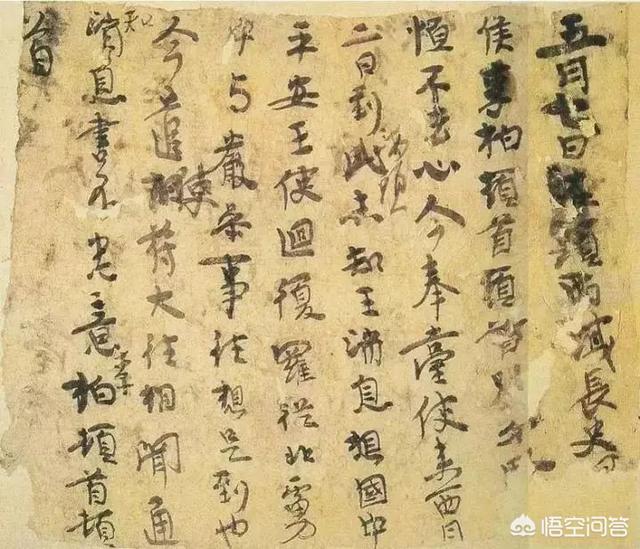 一是横向比较,和他同时代,同背景,甚至他自己的作品比较。当下书坛,可以说鱼龙混杂,风格众多,但总体无外好好写字和不好好写字两大流派。他们都有各自的宗主碑帖,两派目前一致推崇和临摹的碑帖不多,《李柏文书》当列前几帖,此帖的独特之处是它的主人共写了三张草稿,这里列出两幅比较对比一下。下面第一幅雄深苍劲,用笔虽重拙,但使转灵活,多有隶意,略带章草意蕴。第二幅除多加了几句客套话外,文字一样,但其体势已脱去隶意,以行草相间,洒脱灵动,率意自然跃然纸上。其苍茫意向如大漠烽烟,具有很高的苍凉雄浑之气。两个对比,上面的是对下面的修改,也显示了李柏能同时写多种笔体的高超娴熟功夫。下面一幅草稿性情工整不越上面,但无意于工而神彩畅酣,自然之气又胜过第一幅。对比欣赏,让人思绪联翩,联想当时战火纷飞,战马嘶鸣的大漠边关情境,一种艺术的享受,历史的厚重感油然而生。