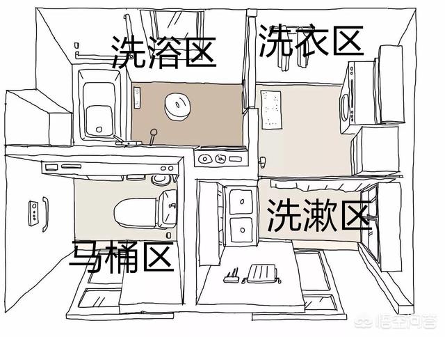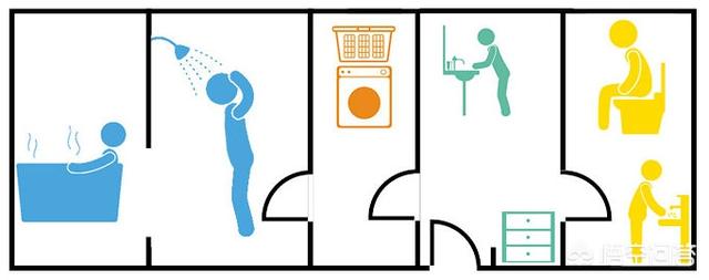 这样做,早起洗漱、上厕所、洗澡的三人,互不干扰。而且每个区域都是独立的空间,干湿分离更彻底,方便打扫的同时,也更卫生。