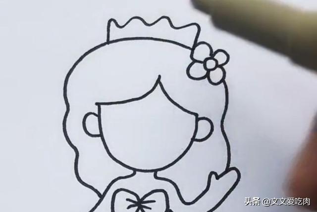 4、接着画出美人鱼的长发和头发上的花朵,如下图所示。
