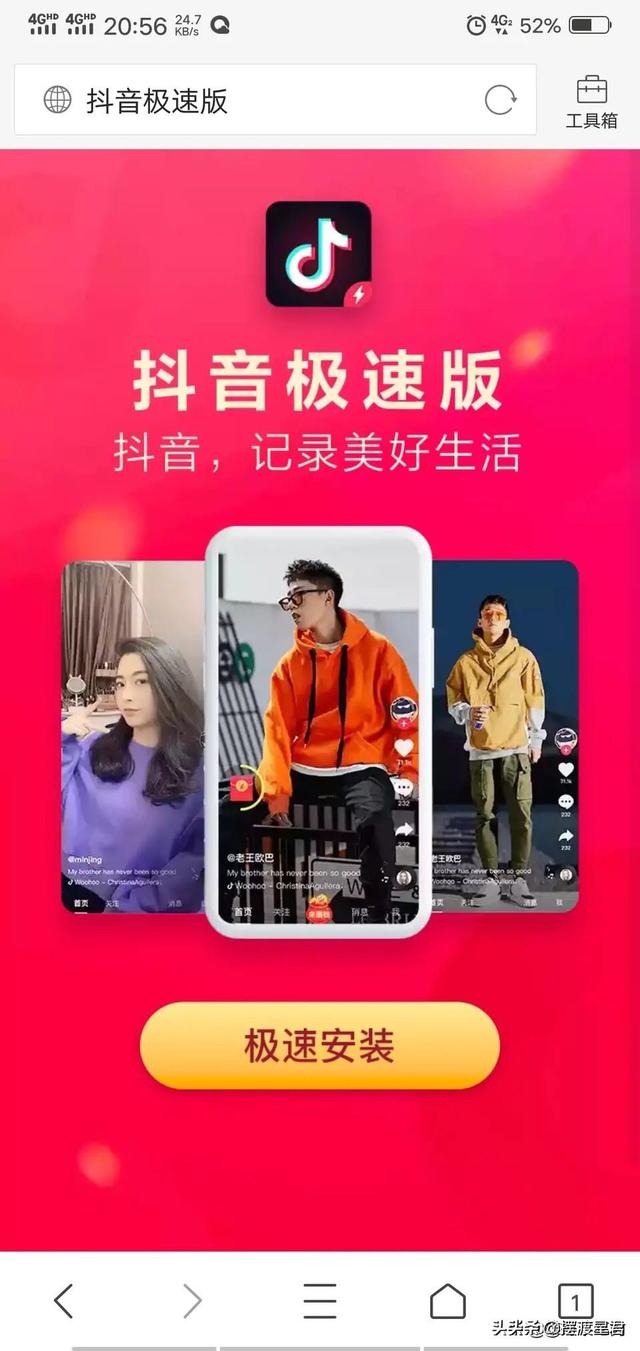 最近抖音极速版开始内测,自有头条或抖音账号就可以登录,目前安卓手机可以,一会儿三十五十,做得好百来八十,看抖音还可以收米!已经到账895元了,内测期间活动力度很大,平台投资十多个亿,抓紧时机赶快上车,VIP邀请码84373951。