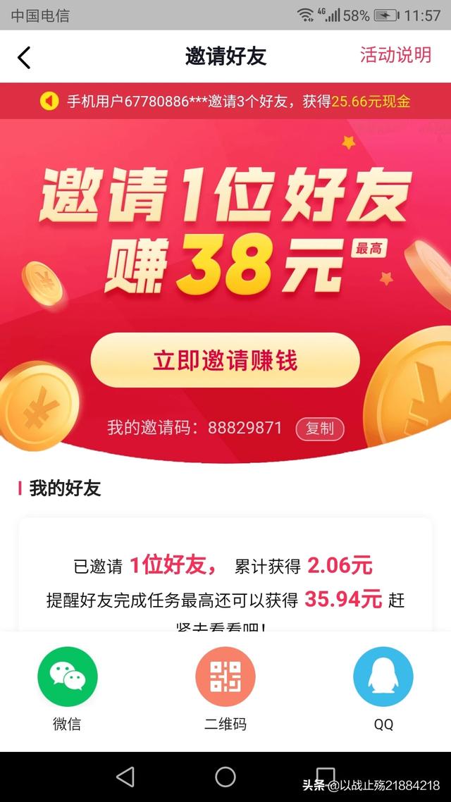 直接扫码下载极速版抖音就看视频赚钱了,输入邀请码直接到账3元噢!一天收100—200不等,收入没上限。填写邀请码88829871奖励2-38元,