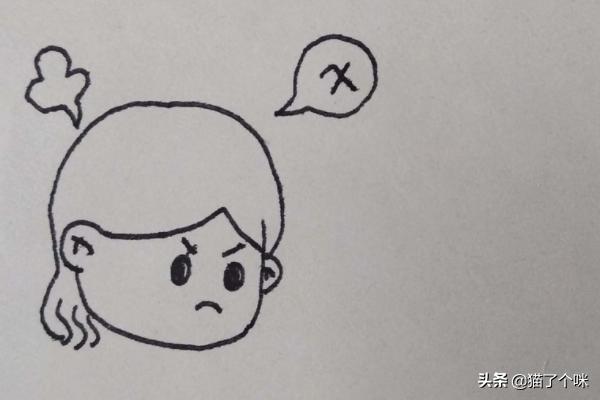 2、然后画出小女孩生气的表情和说的话。