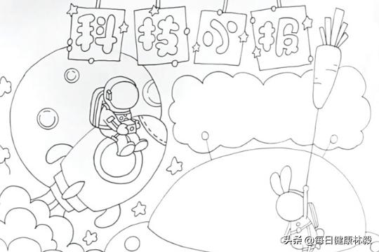 5、空白处的边框画上横线,这样,科技小报手抄报就完成了。