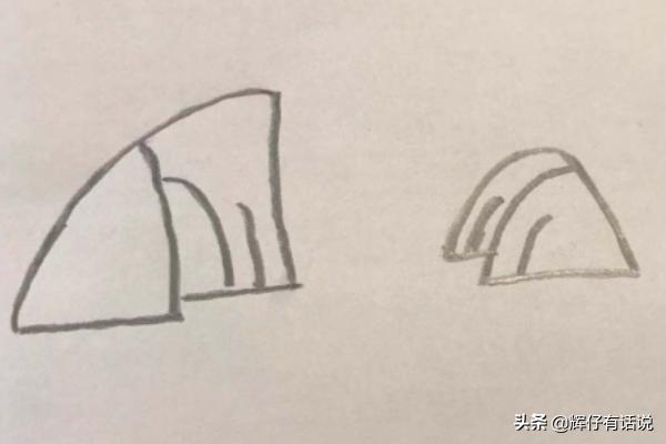 2、在大贝壳的右侧空出来一些空间,然后再画两个小点的贝壳,见下图;