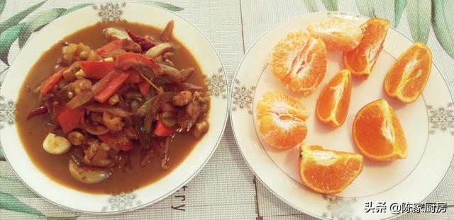 香汁牛蛙最解馋,还没端上桌,孩子就已经闻到那阵阵香气了。饭桌上,孩子夹着一块块蛙肉,送入口中,那陶醉的表情让人忍俊不禁。再配上一盘桔肉、橙子双拼,爽口舒服。