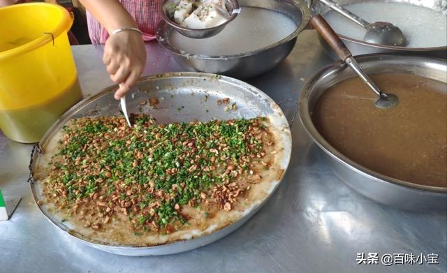 2.芋头糕是用米浆和芋头做成的两面都是软糯的米浆然后中间是香香糯糯的芋头蒸制而成的然后再表面撒上葱花和花生碎,吃的时候切成一小块拌上特制的卤水有些卤水是番茄汁做的,有些是酸水加上辣椒做的,吃起来口感是很好吃的。