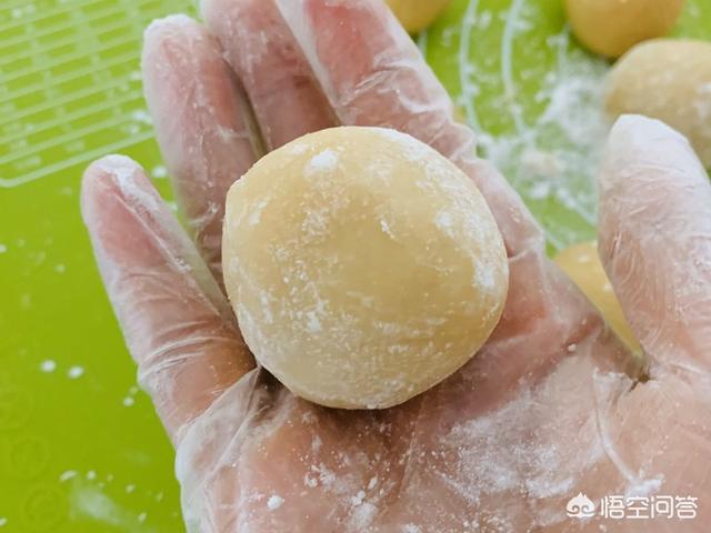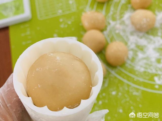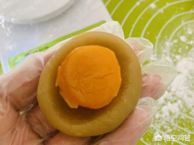 9、皮,白莲蓉,咸蛋黄共50克做一个月饼。