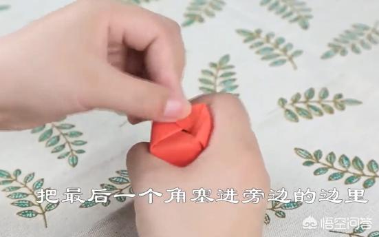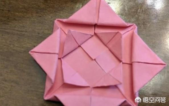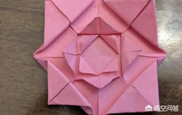 8、向外翻折出第三层。玫瑰花折纸完成,如图所示。