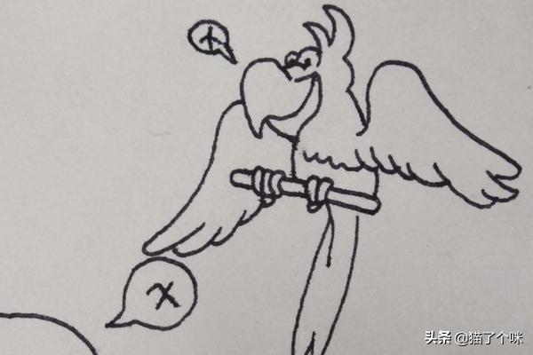 怎么画出成语故事鹦鹉学舌卡通儿童简笔画教程。